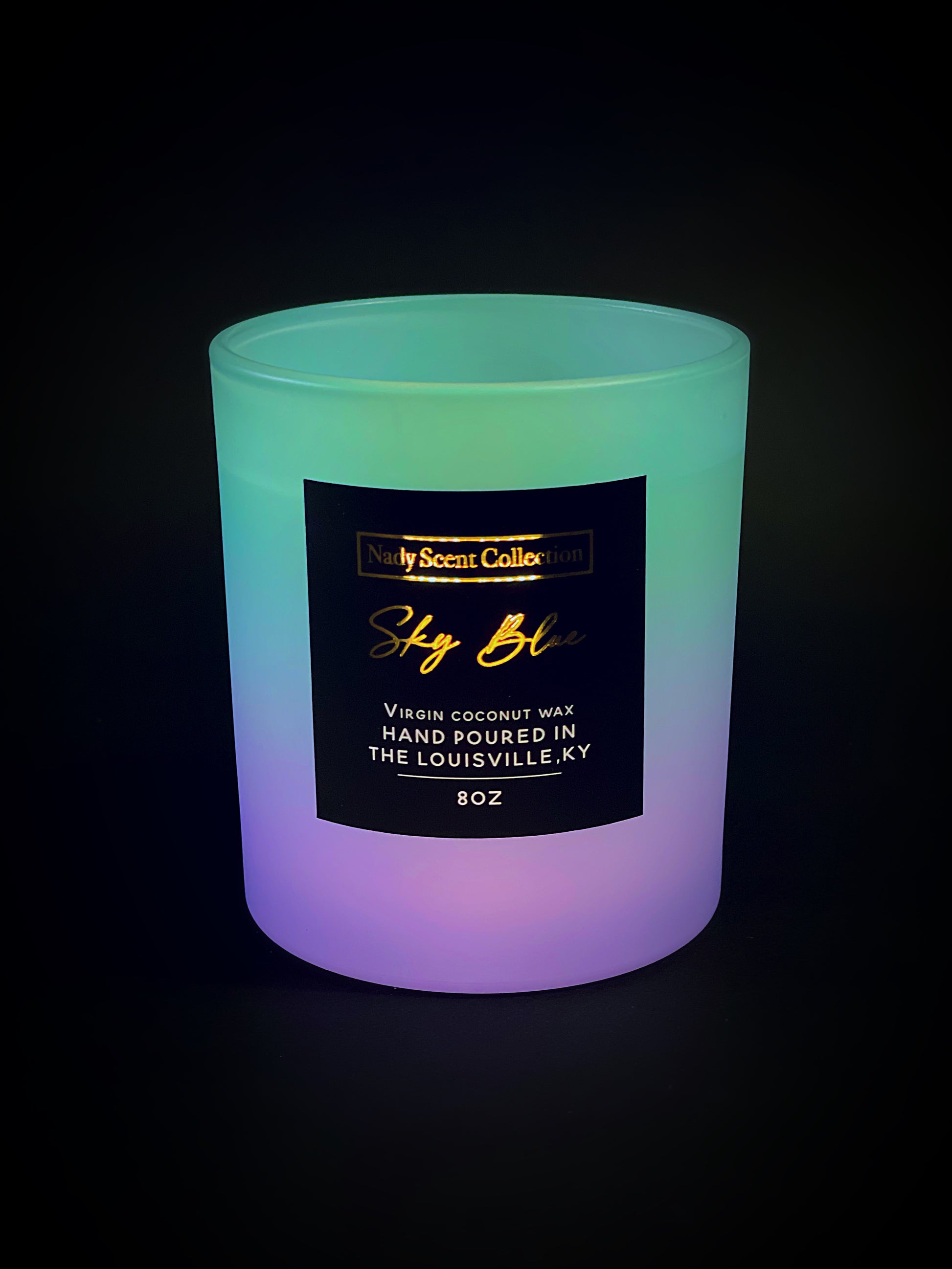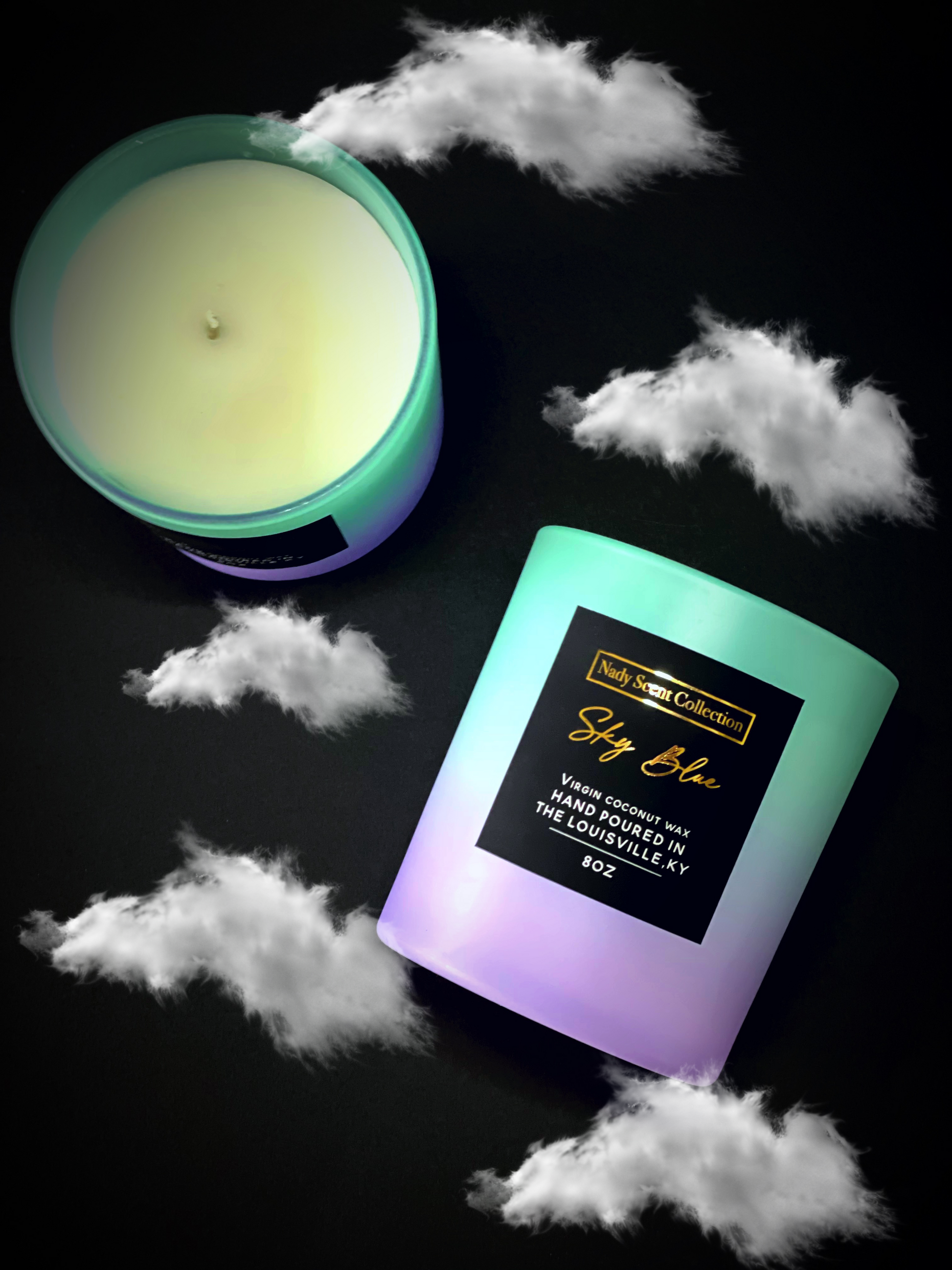Nuestra Vela" Sky Blue " con aroma fresco y cítrico para tu hogar.Una vela con notas de WHITE TEA LEAVES que te dará una sensación de frescor, limpieza y aire puro.Llenará tu hogar de paz y energía positiva.Esta vela esta diseñada para tu habitación ,Sala o cualquier espacio del Hogar.Aroma fuerte y duradero.